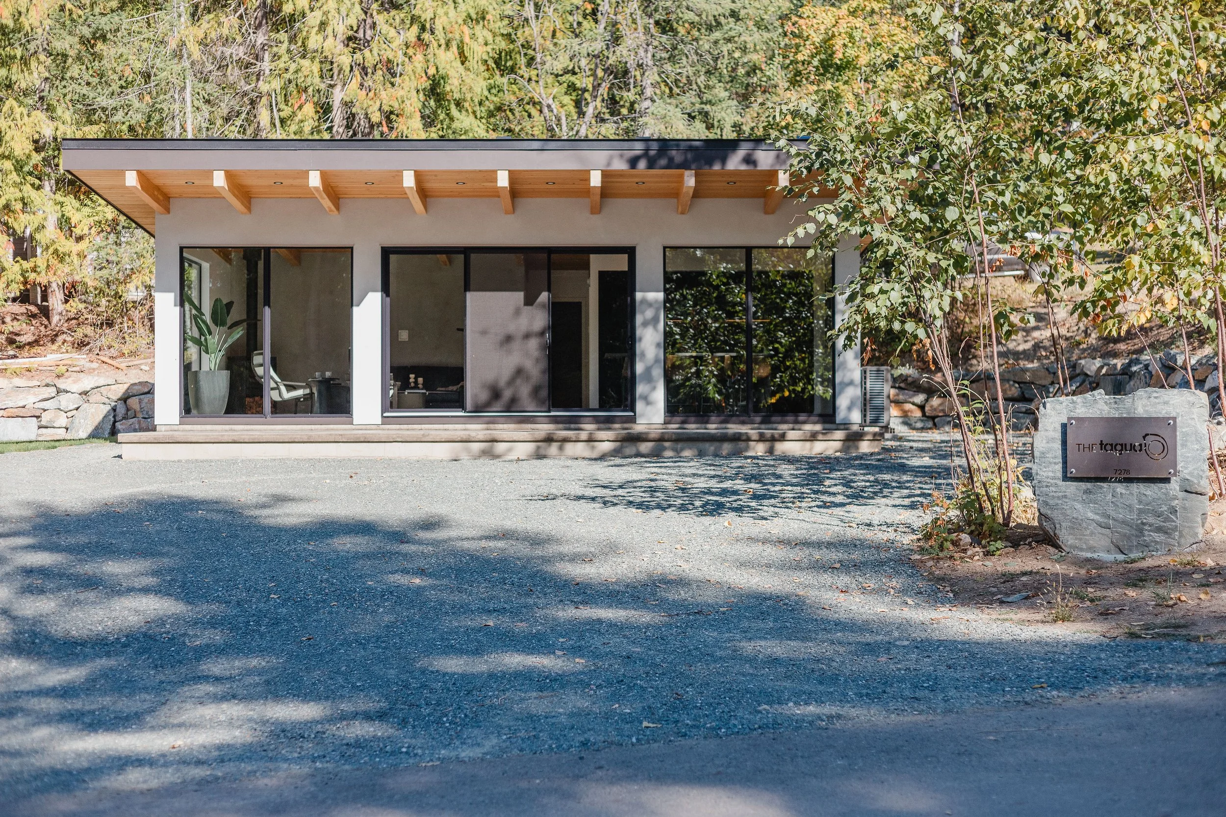 This minimal home was inspired by a vacation at an Ecuador retreat. Here, the focus is on quality craftsmanship and energy efficiency. The restrained contemporary palette is offset by the vaulted ceilings with a tongue and groove finish and exposed glulam beams. The footprint may be small but each space was thoughtfully arranged, proving compact homes do not need to be cramped. The floor to ceiling windows draw your eye outdoor, bringing you closer to the environment outside.